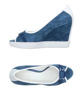 Altezza tacco 10 cm; Altezza del plateau 2,5 cm; Composizione: Pelle, Fibre tessili; interno in pelle, open toe, logo, tacco a zeppa, effetto...