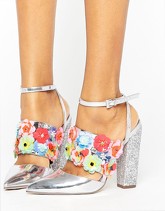 Scarpe con tacco di ASOS Collection, Tomaia in pelle sintetica liscia, Modello in argento metallizzato, Allacciatura alla caviglia, Decorazione...
