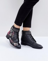 Scarpe piatte di Miss Selfridge, Ricami sulla parte superiore, Fantasia a fiori, Modello easy-on, Borchie decorative, Suola a contrasto, Punta...