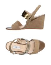 Altezza tacco 8,5 cm; Composizione: Pelle, Fibre tessili; tacco a zeppa, fantasia bicolore, pelle, fibbia, canvas, applicazioni in metallo, punta...