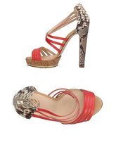 Altezza tacco 12 cm; Altezza del plateau 4,5 cm; Composizione: Pelle; suola di gomma, cinturino alla caviglia, frange, punta tonda, strass, tinta...