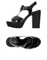 Altezza tacco 13 cm; Altezza del plateau 4 cm; Composizione: Fibre tessili; suola in eco-cuoio, tinta unita, effetto verniciato, cinturino alla...